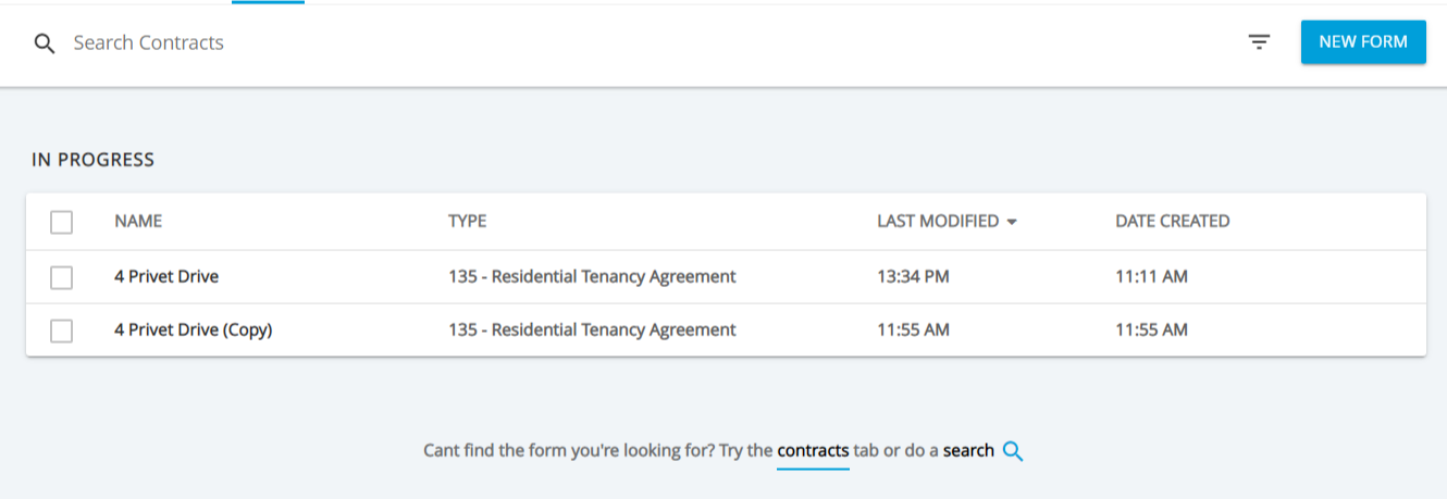 From the Overview or Contracts page select New Form