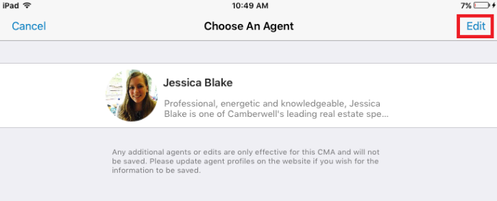 The app pulls through your offices agent profiles from the desktop site. Any changes made to agent profiles on the iOS app are not permanent, if you would like to make permanent changes please follow this guide to update these on the desktop site.