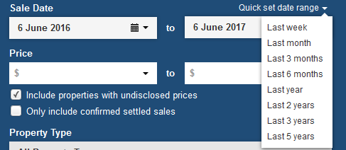 You can also select common date ranges from the "Quick set date range" drop down menu