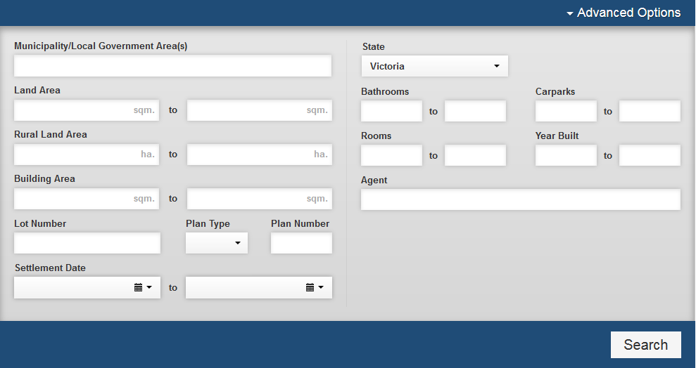 Step 6: Add any advanced search criteria such as land area or number of bathrooms by clicking on "Advanced Options"