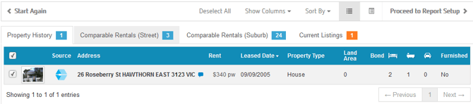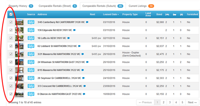 Step 1: Run the search using your specified criteria as per How to customise your search for a Rental CMA Report