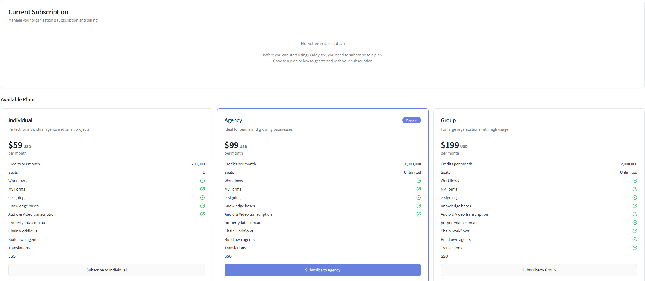 You can now manage and update your Vic Forms subscription plan directly from within the BuddyBee platform.