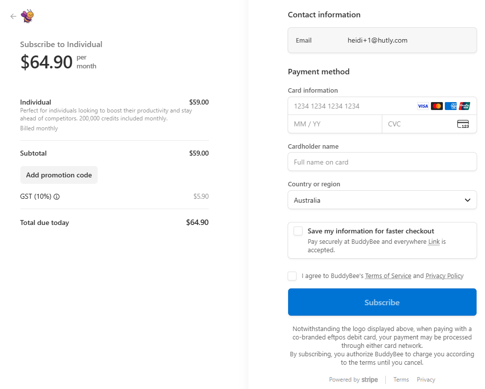Once you have selected your subscription tier, you will then be prompted to re-enter your payment details to confirm the transaction