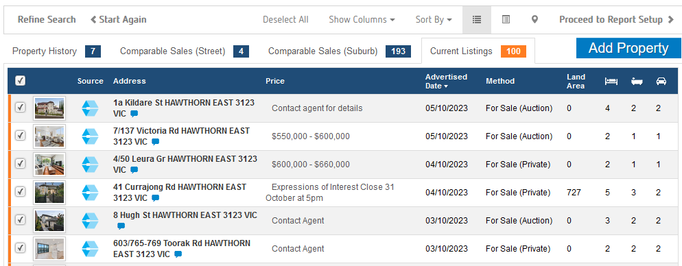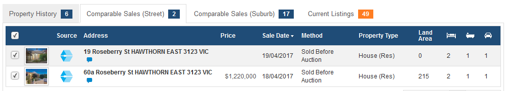 Step 7: Select which sales you would like to appear from the same suburb as target property in the Comparable Sales (Suburb) tab