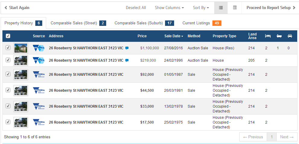 Step 5: Select which sales you would like to appear from the Property History