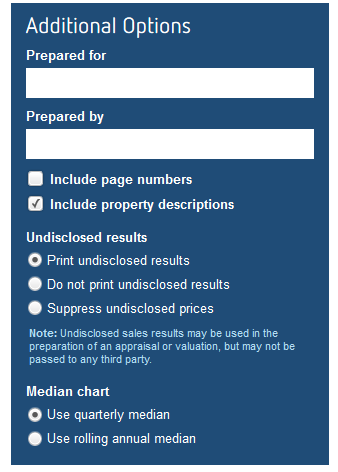 Step 6: Select which sales you would like to appear from the same street as the target property in the Comparable Sales (Street) tab