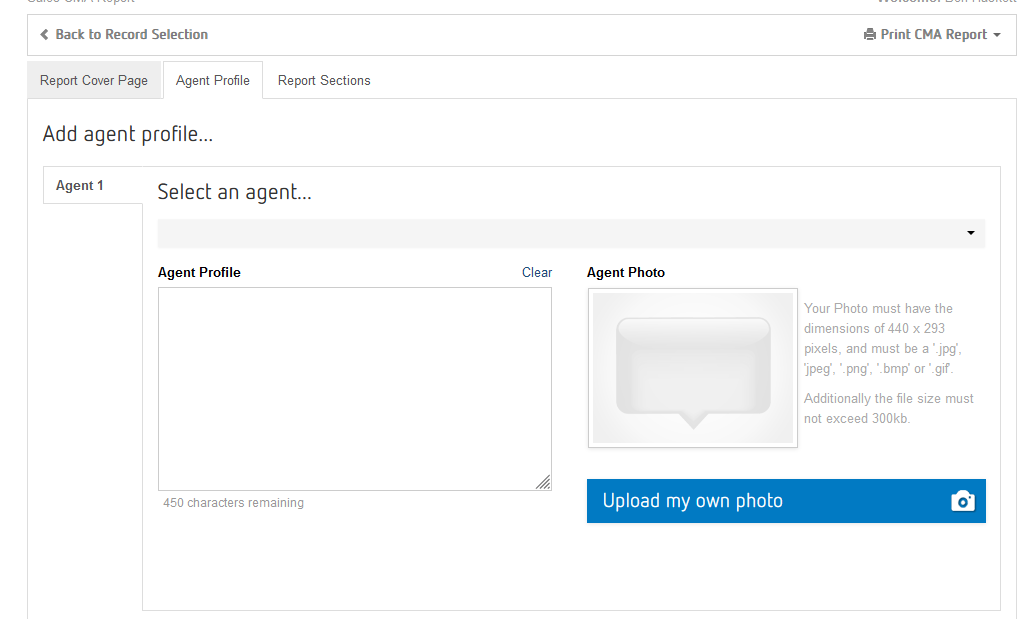 Step 12: Click on the "Agent Profile" tab and select an agent from the drop down box
