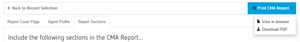 Step 15: Click on "Print CMA Report" and select "View in browser" or "Download PDF"