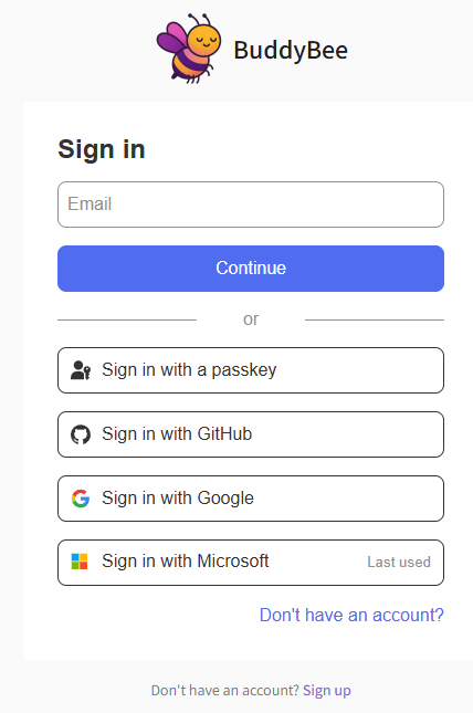 - Subsequent Logins: After the initial verification, you can log in using either a passkey, GitHub, Google or Microsoft. This method eliminates the need for the verification code on future logins.